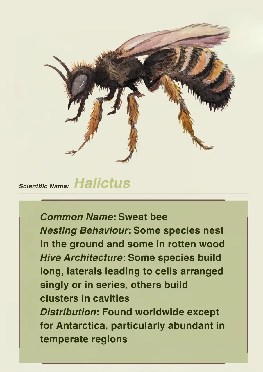 The study also shows bee diversity in different areas of the NBR. These areas include Chamraj, Coonoor, Kotagiri, Sigur and Nilambur. The sites in Chamraj showed a high diversity of species. Coonoor showed a mixed diversity, with some sites with high visitation and species richness and other sites with low diversity. The sites in Kotagiri showed a lower diversity than those in Coonoor, perhaps due to the higher altitude montane forests. Nilambur showed a moderate species diversity, similar to Coonoor. The sites in Sigur have moderate bee presence and diversity. Coonoor and Chamraj, which showed higher diversity, have wet, evergreen and semi-evergreen sites. Kotagiri, which showed the lowest diversity, has a higher altitude with montane forests. Nilambur and Sigur, both of which had moderate diversity and presence, comprise deciduous forests.